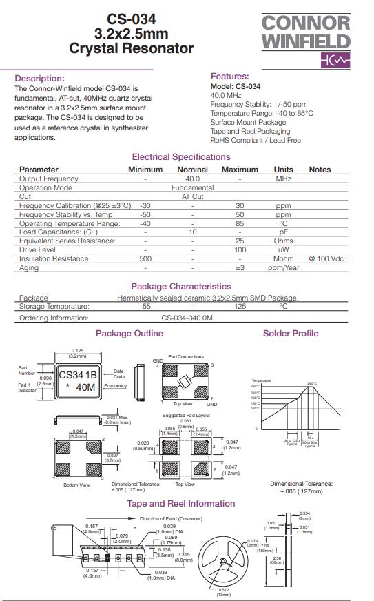 CS-034-040.0M | Connor-Winfield晶振 | CS-034 | 40MHz | ±50ppm | ±30ppm | 10pF |