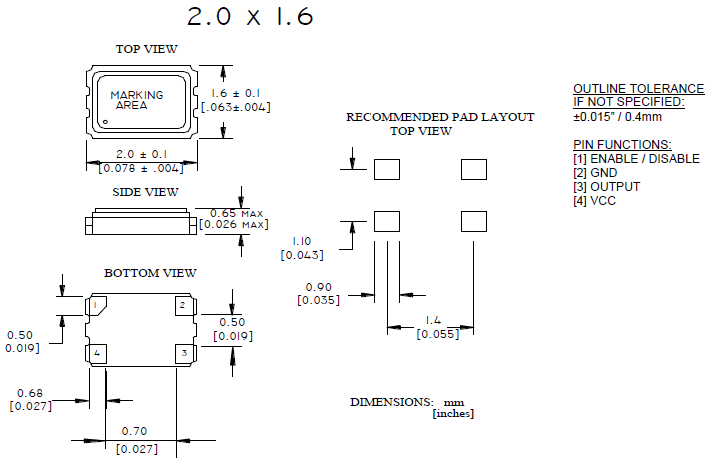 Size/Dimension尺寸 | 2016石英晶振 | 最小包裝數(shù)MPQ: | 1000 |