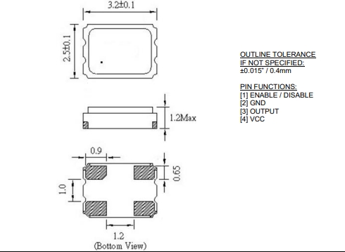 Size/Dimension尺寸 3.20mm x 2.50mm 最小包裝數MPQ: 3000