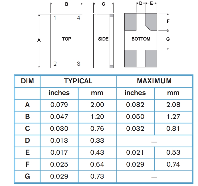 Type 類型 | XO | Package Height高度 | 0.76 mm |