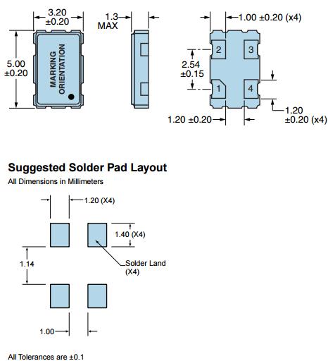 Type 類型 XO Package Height高度 1.3mm
