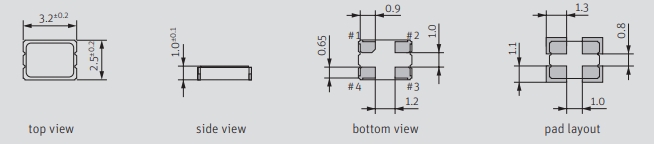 Size/Dimension尺寸 3.20mm x 2.50mm 最小包裝數MPQ: 3000