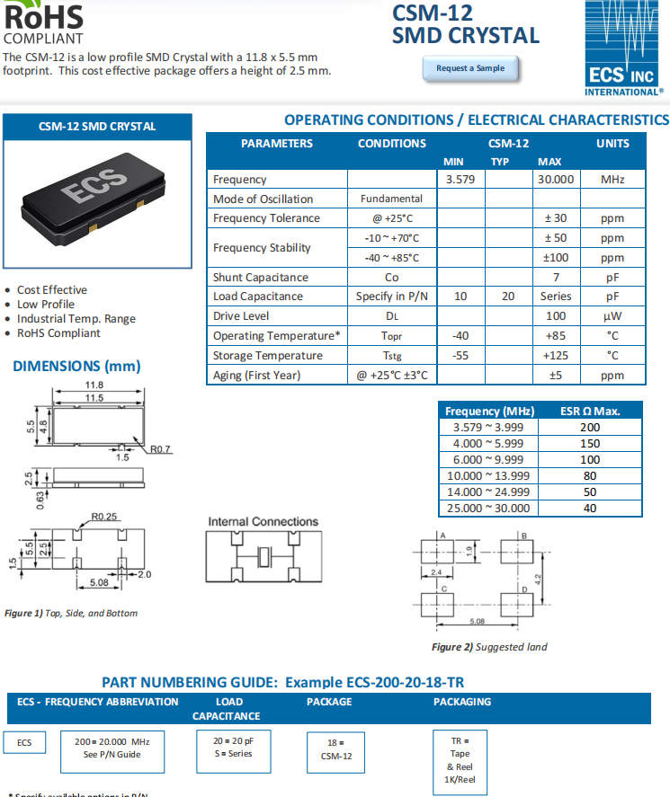 ECS-120-S-18-TR | ECS Crystal | CSM-12 | 12MHz | -40°C ~ 85°C |