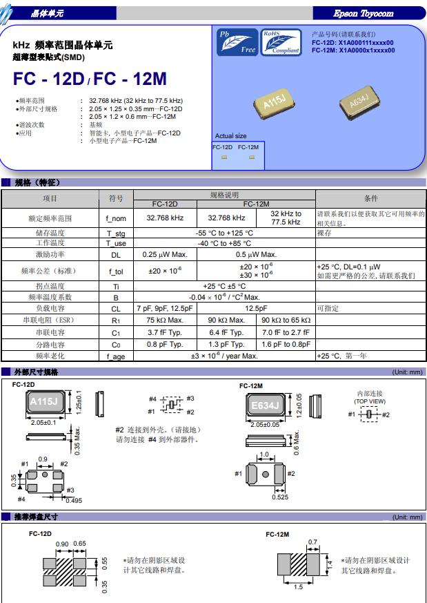 X1A000061000200 | 2.05 x 1.2 x 0.6 mm | FC-12M | 32.768 kHz | 12.5 pF | -40 to +85 °C |