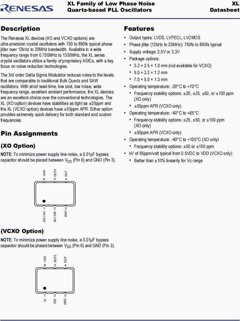 XLL736050.000000I | Renesas晶振 | XPRESSO FXO-LC73 | 50 MHz | LVDS | 3.3V | ±25ppm |