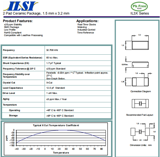IL3X進口晶振,IL3X-HX5F12.5-32.768KHz晶振,ILSI無線局域網晶振