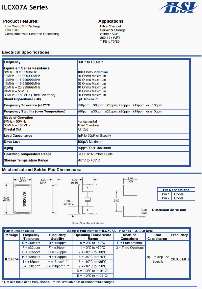 ILSI環(huán)保無(wú)鉛晶振,ILCX07A二腳晶振,ILCX07A-FB1F12- 18.432 MHz移動(dòng)電話晶振