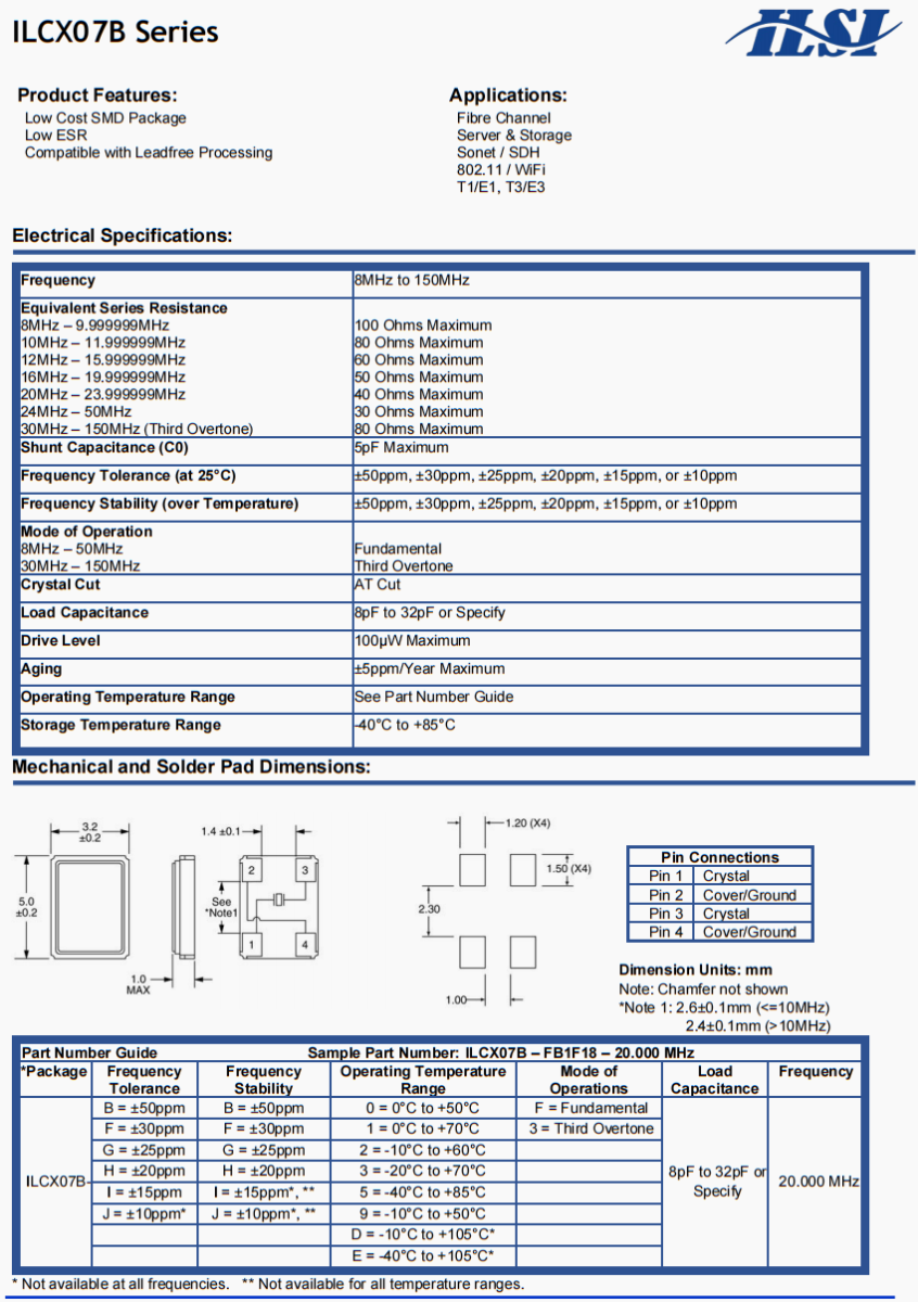 ILCX20-HH3F8-32.000MHZ | ILSI | ILCX20 | 32 MHz | ±20ppm | ±20ppm | 8pF |