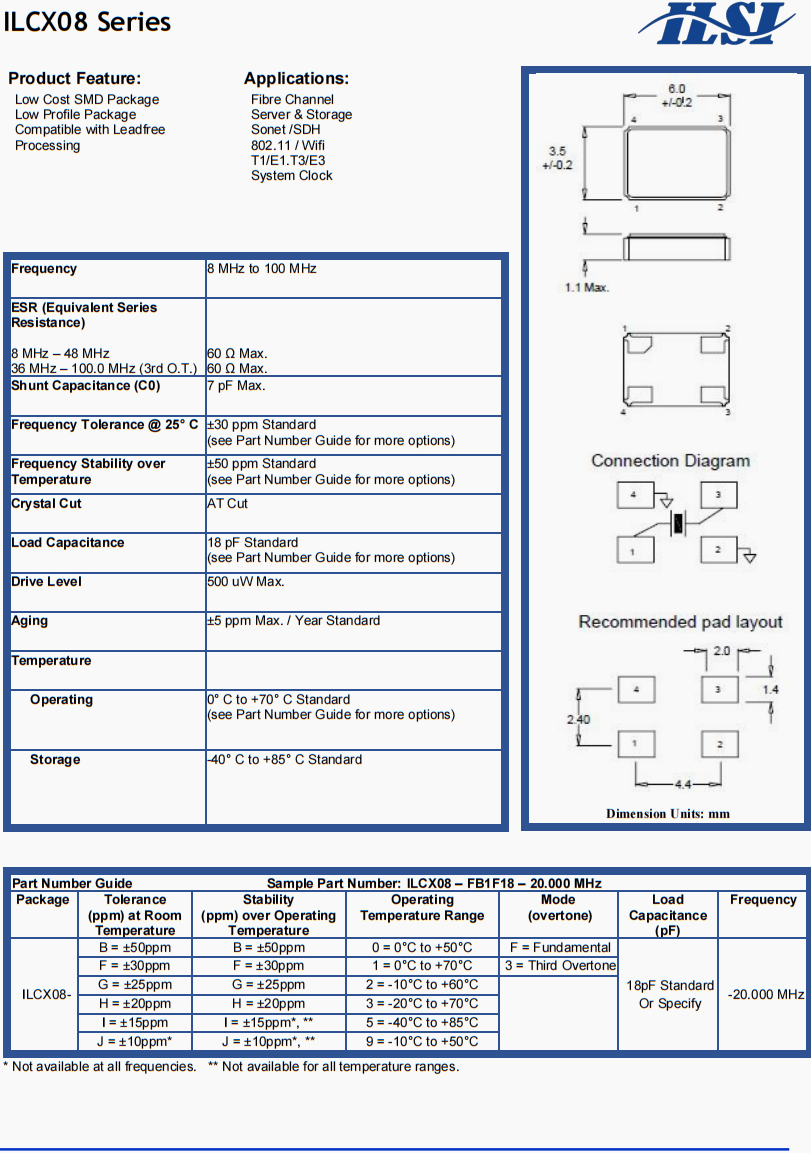 負載電容 | 18 pF Standard(see Part Number Guide for more options) |