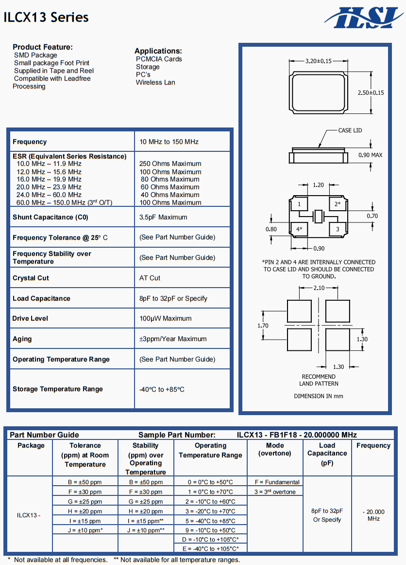 頻率穩(wěn)定度 | ±50 ppm Standard(see Part Number Guide for more options) |