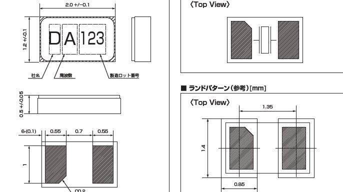 尺寸(mm) 2.0×1.2×0.5(高:最大為0.55mm)。