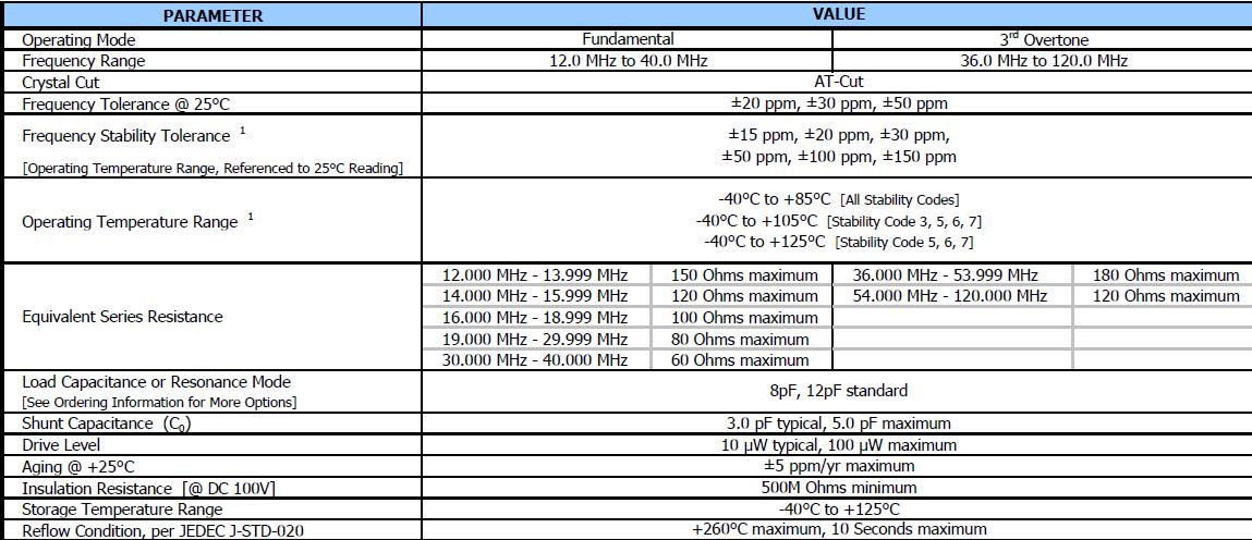 標準3.2毫米x 2.5毫米玻璃密封包,無鉛終止完成,頻率范圍12 - 40 MHz基本,36 - 120 MHz第三泛音,頻率公差;±20 ppm,±30 ppm和±50 ppm,頻率穩定度、參考訂購信息,操作溫度,-40°C +125°C標準,磁帶和卷軸包裝標準,eia - 481,通過無鉛認證符合歐盟指令2011/65 /歐盟.