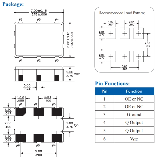 Size/Dimension尺寸 | 7.00mm x 5.00mm | 最小包裝數MPQ: | 1000 |
