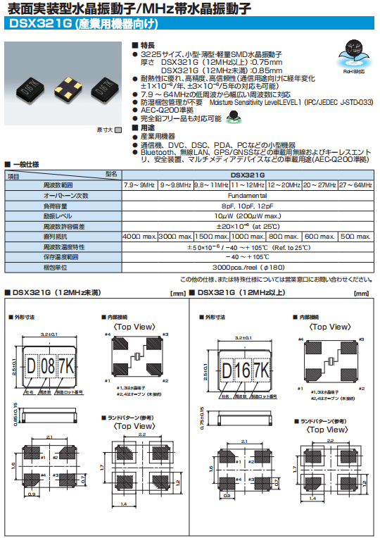 ●厚度 DSX321G (12mhz以上):0.75mm,DSX321G(小于12mhz): 0.85mm