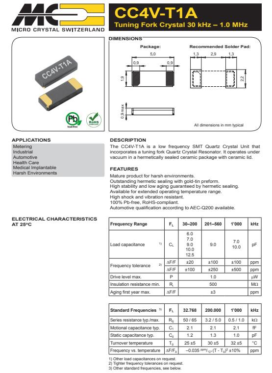 CC4V-T1A-32.768kHz-12.5pF-20PPM-TA-QC,Micro進(jìn)口石英貼片晶振,32.768KHz,CC4V-T1A-32.768kHz-12.5pF-20PPM-TA-QC晶振,Micro進(jìn)口石英貼片晶振,32.768KHz晶振,5019SMD晶振,耐高溫晶振,環(huán)保晶振,測(cè)量?jī)x器晶振,工業(yè)設(shè)備晶振,汽車動(dòng)力轉(zhuǎn)向轉(zhuǎn)向器晶振,汽車音影晶振,醫(yī)療設(shè)備晶振.