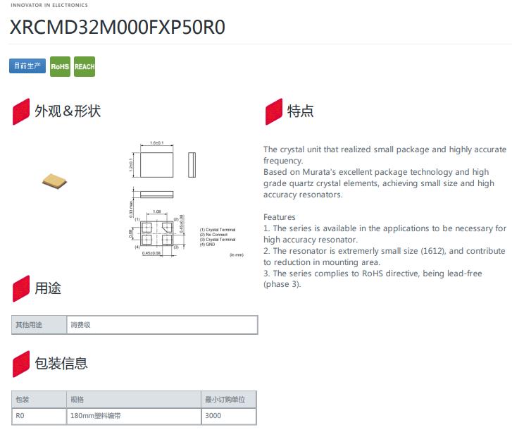 日本村田品牌晶振MCR1612,XRCMD32M000FXP50R0超小型晶振,參數圖