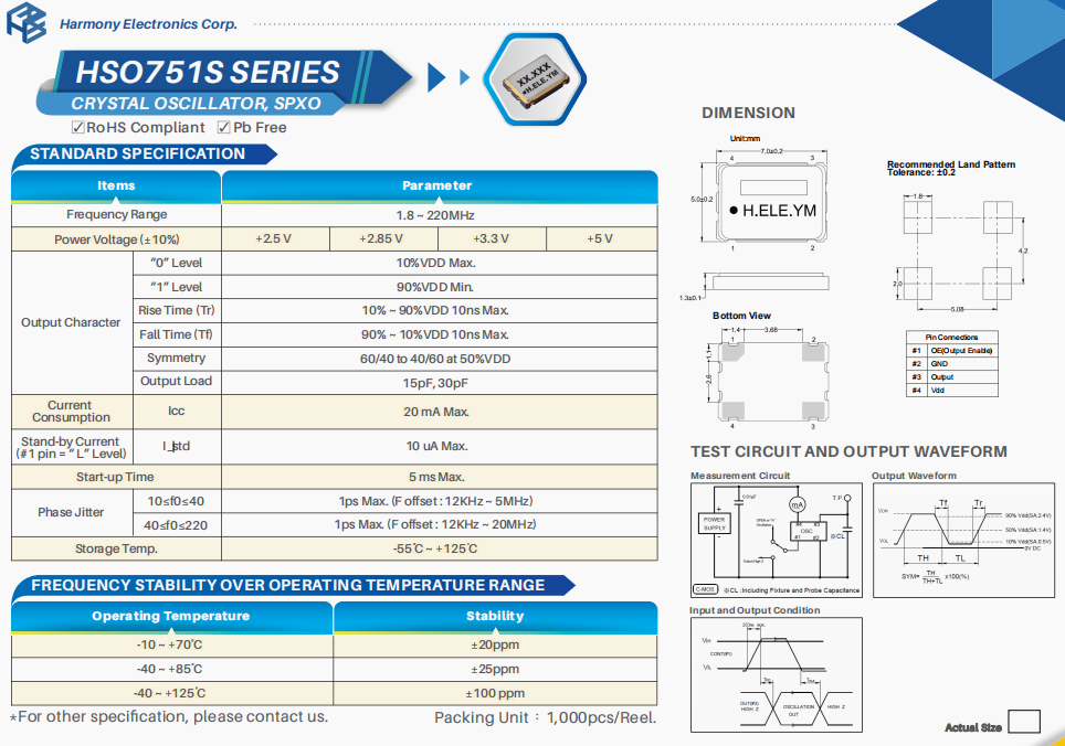 X3S025000BK1H | 加高晶振 | HSX321S | 25 MHz | ±20ppm | 20pF | -30°C ~ 85°C |