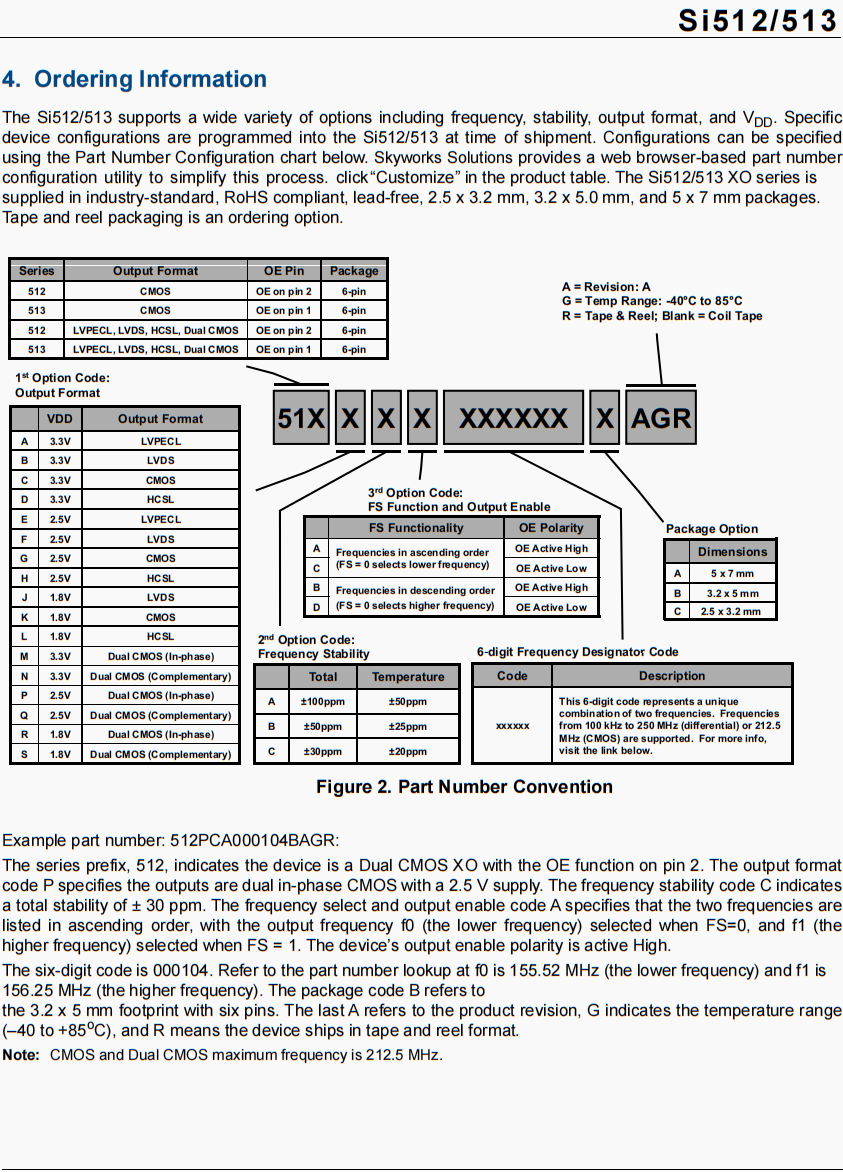 512ABA156M250AAGR | Skyworks晶振 | Si512 | XO | 156.25 MHz | LVPECL | 3.3V | ±25ppm |