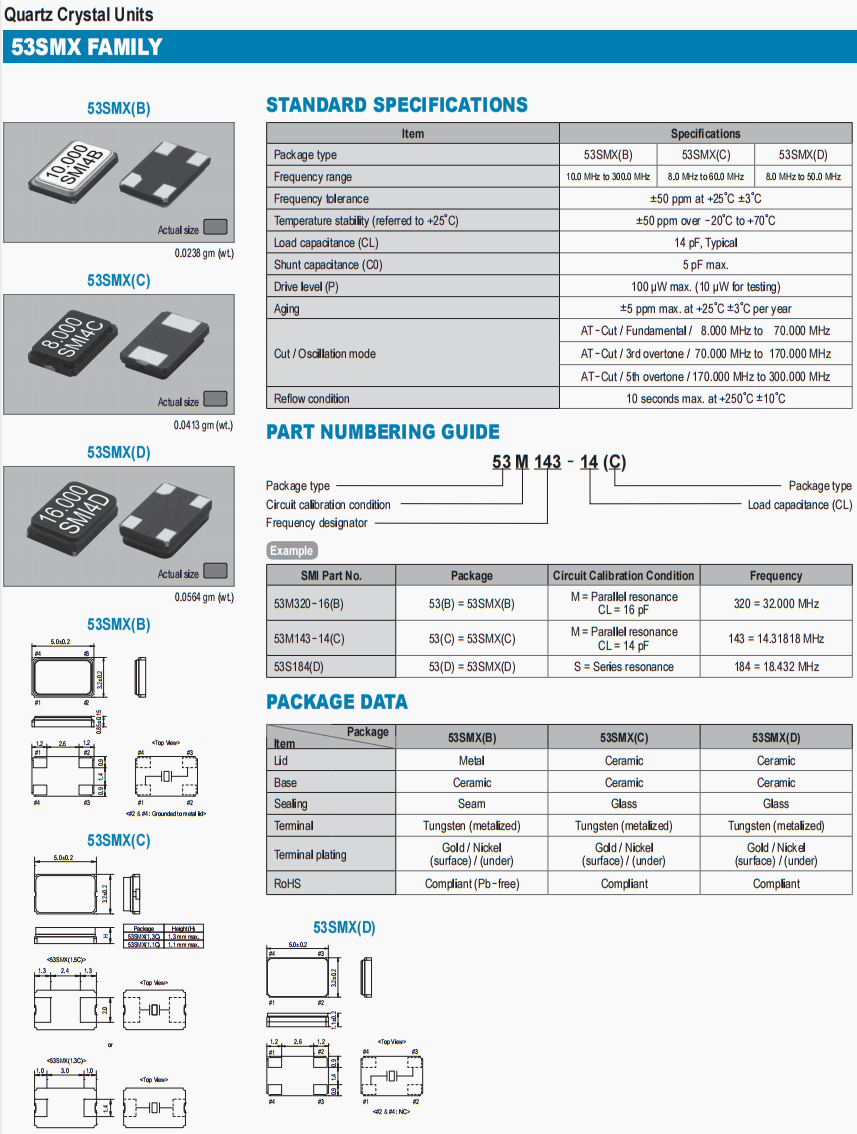 53M300-14(B)晶振,SMI高品質無源晶振,無人機型號傳輸晶振