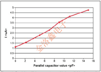 圖4.晶體振蕩器電流與增加的并聯負載電容.
