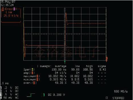該輸出信號通過N分頻計數器發送回鑒相器.通常,環路濾波器的設計旨在匹配PLL應用所需的特性.如果PLL要獲取和跟蹤信號,則環路濾波器的帶寬將大于預期固定輸入頻率的帶寬.PLL將接受并鎖定的頻率范圍稱為捕獲范圍.PLL鎖定并跟蹤信號后,PLL將遵循的頻率范圍稱為跟蹤范圍.通常,跟蹤范圍大于捕獲范圍.環路濾波器還確定信號頻率可以改變的速度,并且仍然保持鎖定.這是最大回轉速率.環路濾波器帶寬越窄,可實現的有源晶振相位誤差就越小.這是以較慢的響應和減小的捕獲范圍為代價的.PLL動態響應的典型測量示例如圖2所示.該PLL用于頻率合成器,并顯示了10MHz參考輸入中對80kHz階躍的響應.該電路的捕獲范圍約為中心頻率的+/-5%.