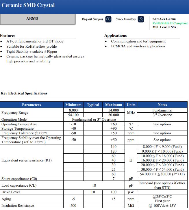 ABM3-10.000MHZ-B4Y-T | Abracon晶振 | ABM3 | MHz Crystal | 10MHz | 2-SMD, No Lead |