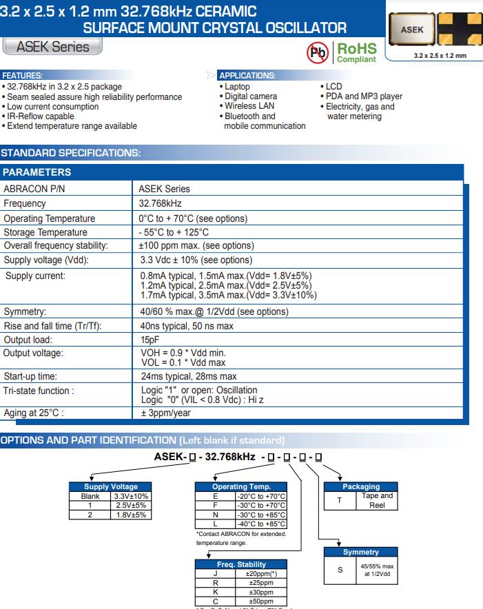 ABRACON P/N ASEK系列