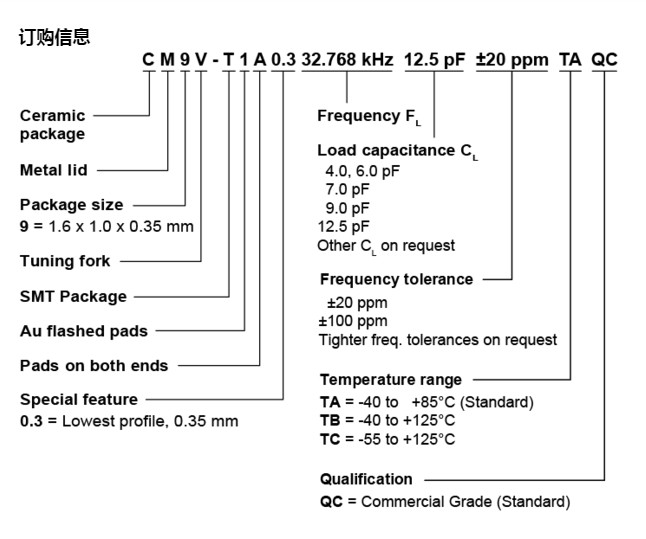CM9V-T1A 0.3是一款低頻SMT石英晶體單元,32.768KHz晶振,CM9V-T1A0.332.768kHz12.5pF±20ppmTAQC,石英晶體諧振器