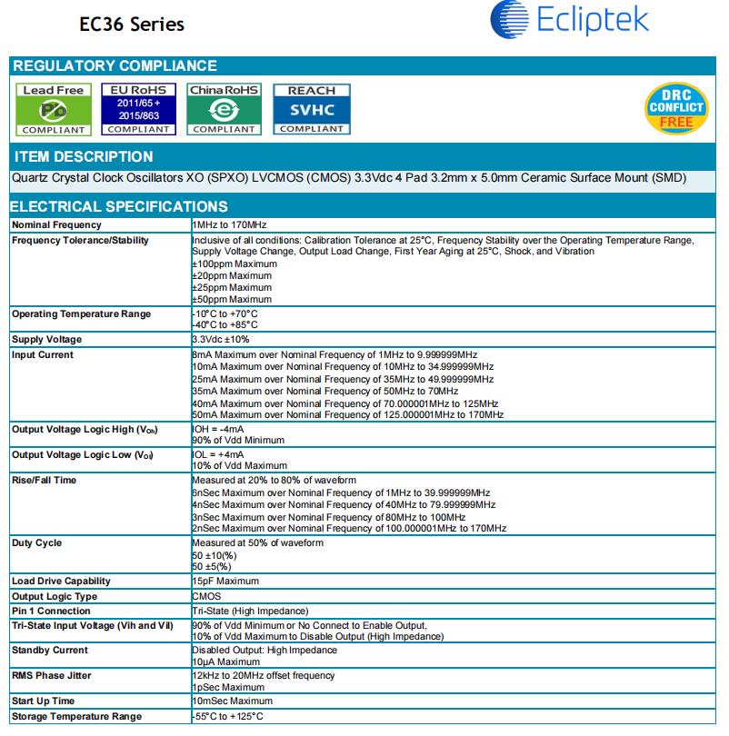 Ecliptek | 表面貼裝晶體振蕩器 | Oscillator XO 33.333MHz ±50ppm 15pF LVCMOS 55% 1.8V 4-Pin CSMD Bulk |