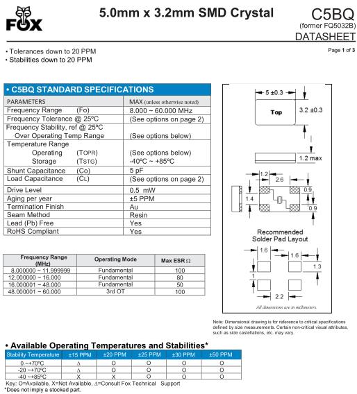 FQ5032B-20.000 | FOX無源晶振 | C5BQ | MHz Crystal | 20MHz | ±30ppm |