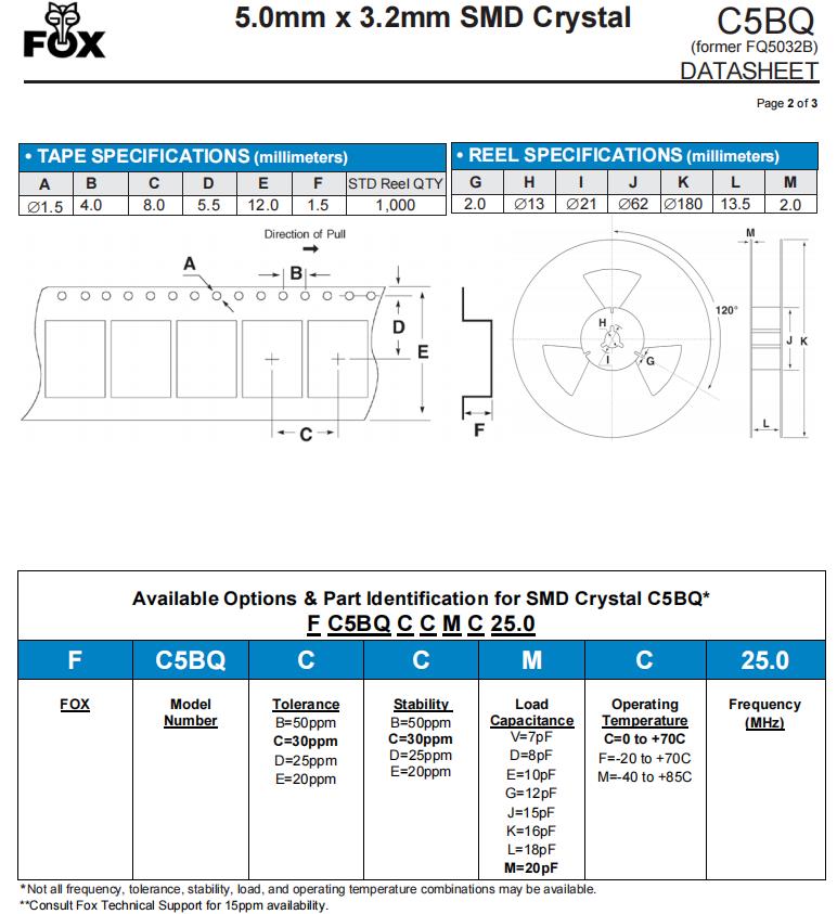 FQ5032B-25.000 | FOX無源晶振 | C5BQ | MHz Crystal | 25MHz | ±30ppm |