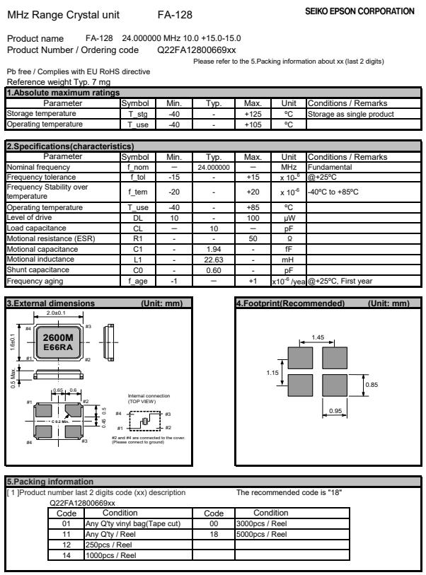 Q22FA1280069200 | 2 x 1.6 x 0.5mm | FA-128 | 24.000000 MHz | 18 pF | +/-30 ppm |