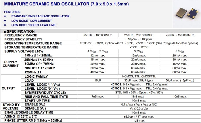 TYETBCSANF-50.000000 | Taitien | TY | TCXO | 50 MHz | Clipped Sine Wave | 2.8V ~ 3.3V | ±1ppm |