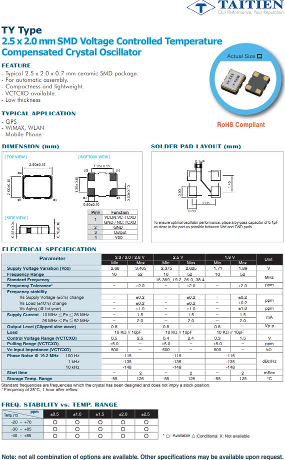 TYKTCCSANF-19.200000 | Taitien | TY | TCXO | 19.2MHz | 1.8V |