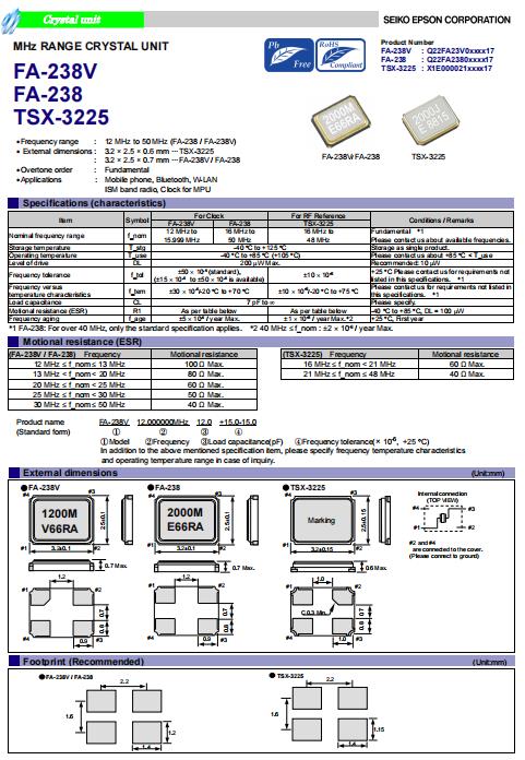 X1E000021015016 | 3.2 x 2.5 x 0.6mm | TSX-3225 | 26.000000 MHz | 16 pF | +/-10 ppm | +/-20 ppm | -40 to +85 °C | ≤ 40 Ω |