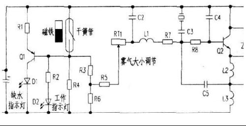 一般家用加濕器是通過霧化片與BU406,電容,電阻組成正反饋諧振電路,28V-50V直流電壓之間可調壓控輸出諧振功率,達到控制霧化大小的作用,就這些,很簡單。
