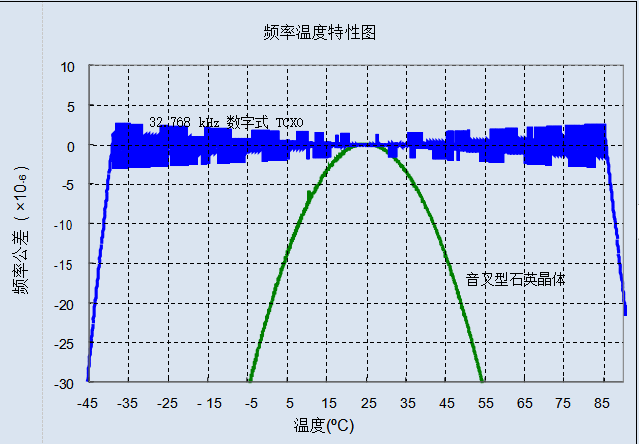 根據(jù)市場要求(能以極低的耗電量保持現(xiàn)在的時刻),用于計時的低頻 時鐘一般采用音叉型石英晶體振蕩器。 音叉型石英晶體振蕩器驅動時耗電量少的反面,其頻率溫度特性為圖 1 所示的二次曲線。所以,在進行時鐘誤差設計時,除了室溫(+25℃) 條件下的頻率公差以外,還應當考慮到二次曲線的頻率溫度特性公差。 假設在-40℃的條件下使一般的音叉型石英晶體振蕩器連續(xù)工作 1 個月, 那么其振蕩頻率公差將達到-150×10-6 左右,相當于出現(xiàn) 6 分鐘(月差 6 分鐘)以上的時間誤差。 為此,設計人員也許會考慮使用 AT 型石英晶體等頻率溫度特性較好的 振蕩器作為波源。但 AT 型石英晶體的振蕩頻率通常達到幾 MHz,所以 需要在振蕩電路中進行分頻,以達到用于時鐘時的頻率。 這時,在振蕩電路中消耗的電流將達到使用音叉型石英晶體振蕩器時的數(shù)百倍。因此,我們認為把 AT 型石英晶體用于作為時鐘 波源的方法不符合市場要求。