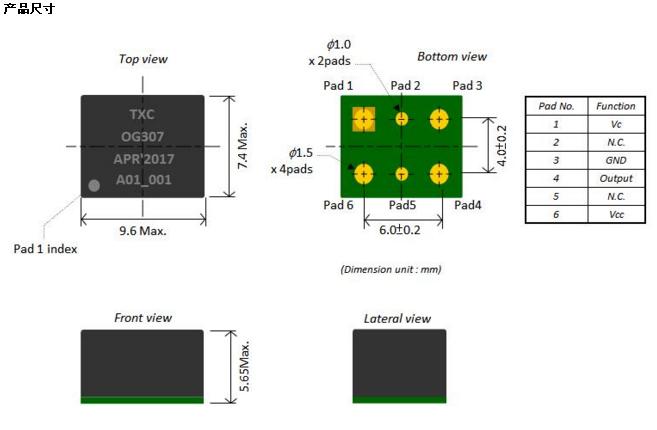 雖說已經是世界上最小型的貼片型恒溫晶體振蕩器,但尺寸相對普通石英晶體振蕩器來說還是比較大的,長9.6mm*寬7.4mm*厚5.5mm,輸出方式是CMOS,頻率偏差從10.000MHZ~40.000MHZ之間,精準度有+/-10ppm~+/-50ppm,以及超低的3.3V電壓特性,工作時可承受-40攝氏度到+85攝氏度,因些也具有耐高溫特性。