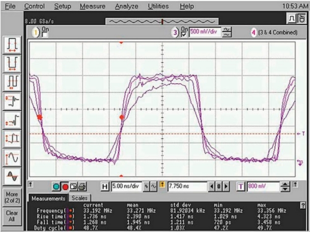 當同一頻率的多個輸出在同一時間點切換時,最終結果是時鐘頻率諧波處的較大EMI雜散,以及開關電流總量導致的電源噪聲增加.通過對每個時鐘輸出偏斜進行編程,使其相對于其它輸出延遲,雜散能量得以分散,從而降低峰值EMI和電源開關噪聲.今天的大多數嵌入式系統實現了差分時鐘方法以獲得更高的帶寬,許多電路板設計人員忽略了這些信號格式對EMI和系統性能的影響.邊沿壓擺率的不匹配以及真實信號和互補信號之間的偏斜將產生輻射EMI的共模能量,以及導致數據丟失的不穩定交叉點.由于這些系統中的時鐘樹通常以差分輸出驅動多條總線,因此任何差分時鐘失調都會產生大量共模能量.利用I2C可編程或工廠可配置的偏斜和邊沿速率特性,每個I/O都可以針對PCB環境進行單獨調諧,以實現交叉點優化和EMI降低.skyworks思佳訊晶振可編程阻抗還允許電路板設計人員以最佳方式匹配負載阻抗,而無需修改分立式端接網絡或PCB走線設計.不匹配的走線阻抗會引起反射,從而產生時鐘過沖和下沖,導致接收設備時鐘電路中的EMI和毛刺增加.大規模定制的時代到了頻率定制已經成為必然,但如何解決開發人員在設計系統和達到里程碑時關心的其他參數,如信號優化或最終產品符合聯邦監管要求?仍然很難說服系統設計人員,時序中存在"大規模"定制這種東西,無論應用如何,都可以實現最佳的時序解決方案,而無需幾個月的交付時間或大量非經常性工程(NRE)費用.