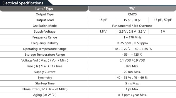 - 產品描述:臺灣進口7W晶振是7050封裝式石英晶體振蕩器,四個腳貼片式CMOS輸出晶振,電源電壓范圍1.8V~5V,覆蓋范圍廣是其高的精度的特征.其穩定性好,低抖動及低功耗主要應用于無線通信,PC,藍牙裝置等,符合ROHS及無鉛應用.